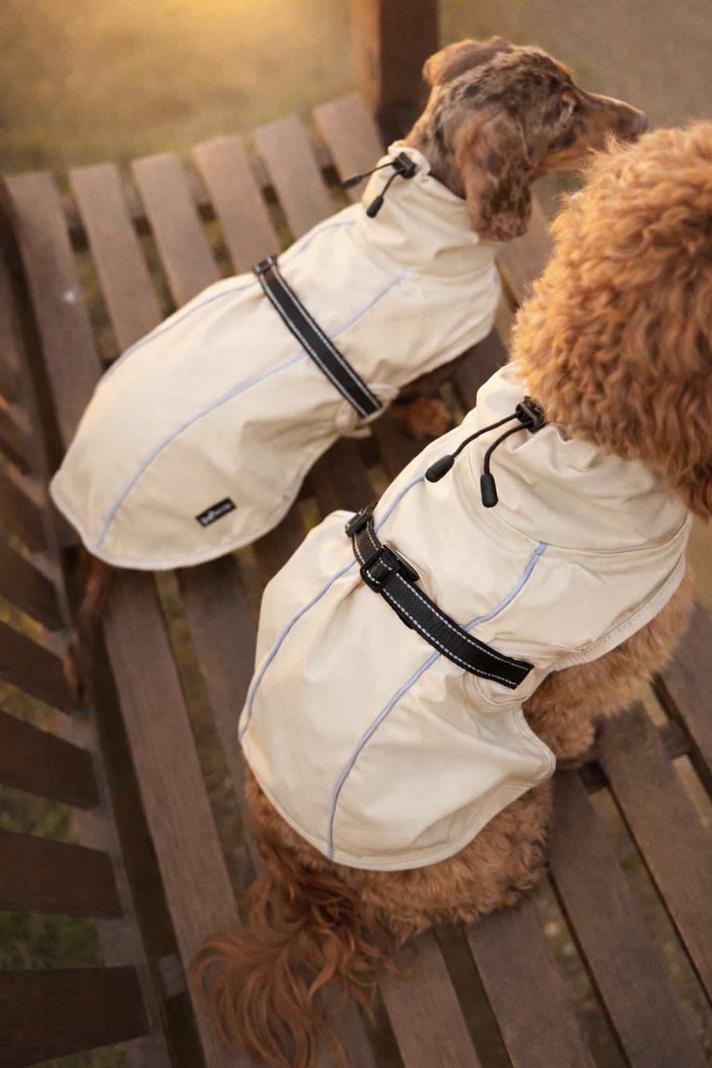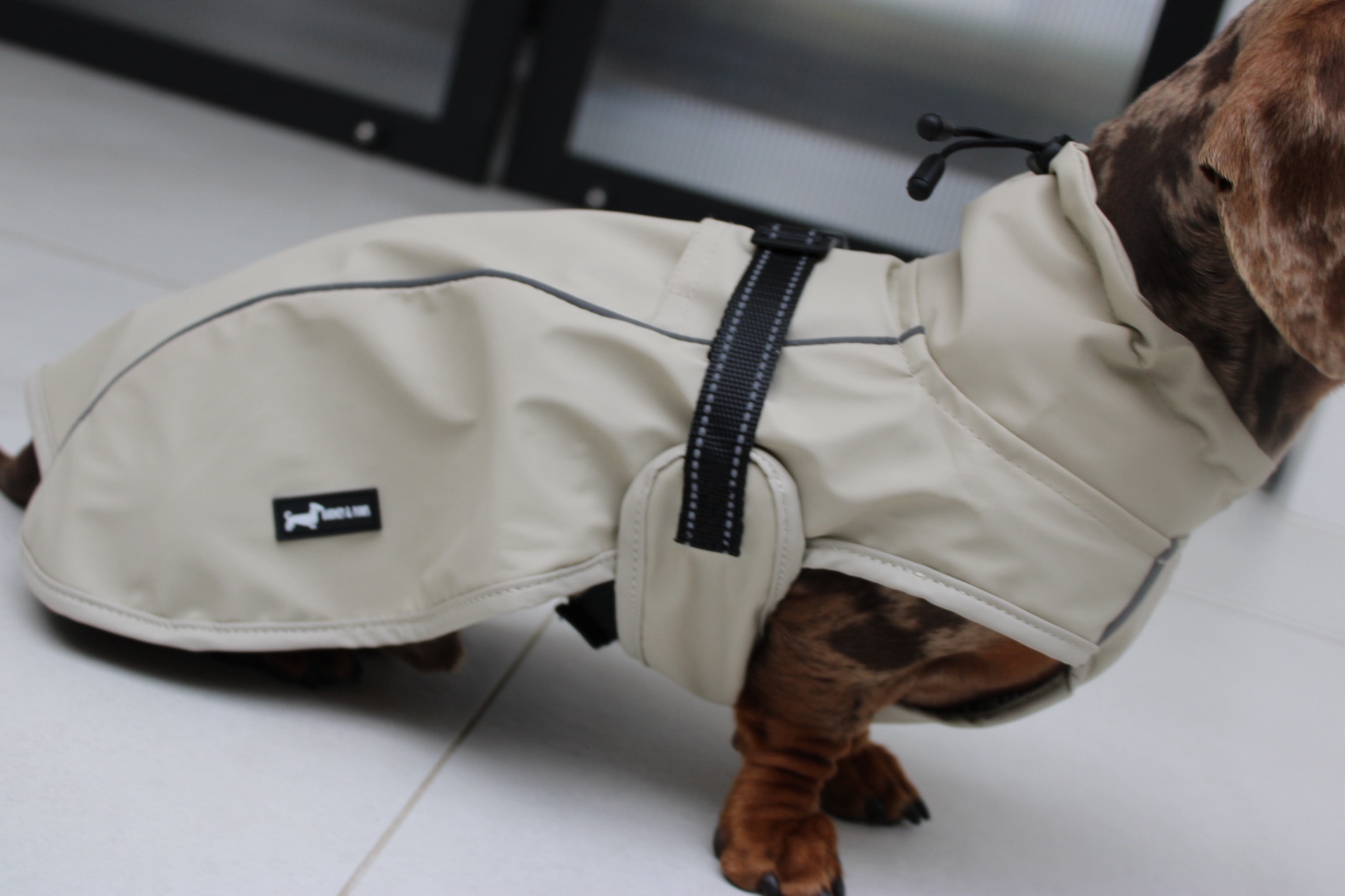 Keep your pup dry and stylish on every adventure with our Biscuit coloured Bark Mac. Designed in a sleek, neutral tone with reflective piping, this coat offers the perfect blend of fashion and functionality for those rainy-day walks.