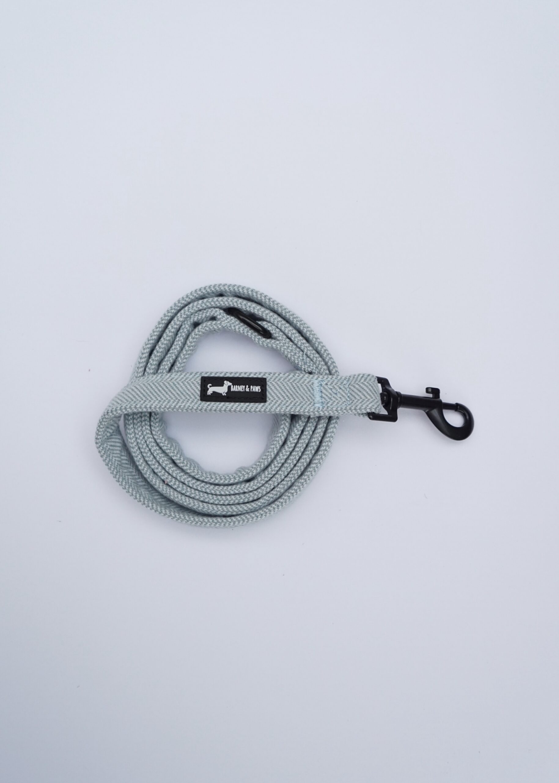 Add a crisp, cool touch to your pup’s wardrobe with our Herringbone Frost Lead. Featuring a soft, icy blue herringbone fabric and sleek black hardware, it’s the perfect blend of elegance and everyday function — designed to pair effortlessly with your matching harness or collar.