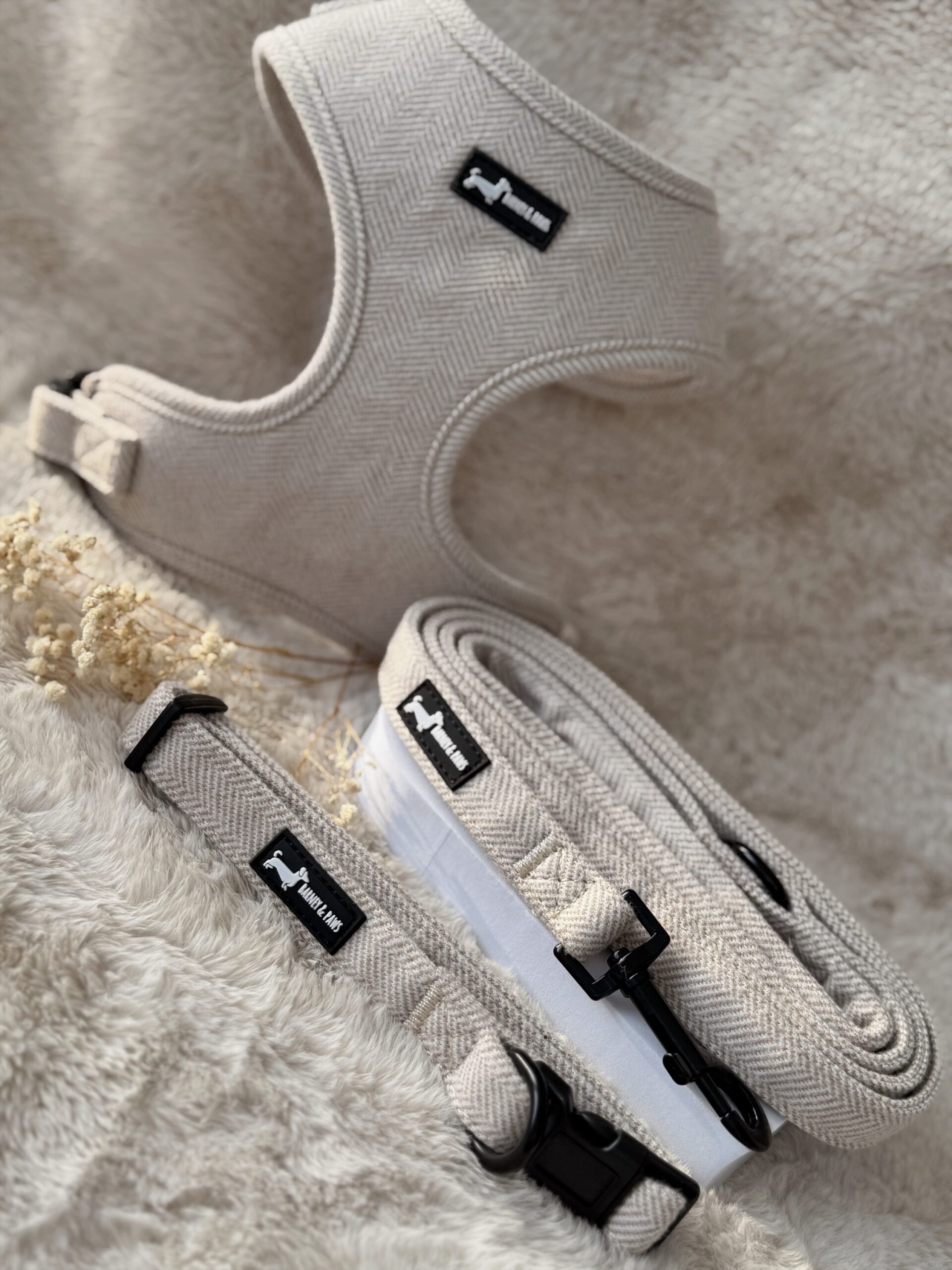 Warm, creamy, and effortlessly classic — Herringbone Oat is a timeless neutral that suits every pup and every season. The soft herringbone texture paired with its oat-toned hue brings a cosy, countryside charm to everyday walkies.