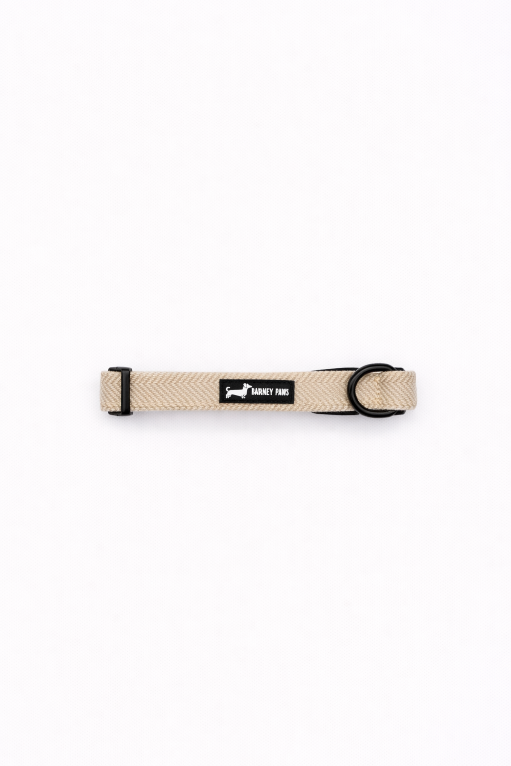 Bring understated charm to your everyday walks with our Herringbone Oat Collar. Crafted from textured herringbone fabric in a creamy beige shade, it’s the perfect neutral for stylish pups all year round.