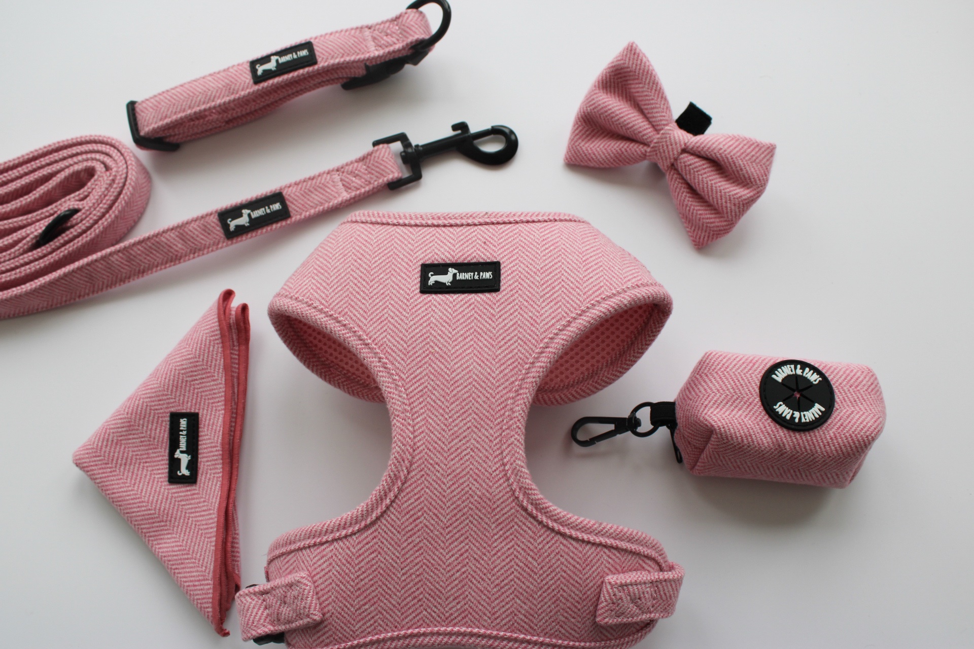 Elegant, soft, and subtly romantic — Herringbone Rose is a beauty that brings timeless charm to your pup’s everyday wardrobe. With its pink herringbone texture and classic design, this set is perfect for dogs who walk with grace and a touch of flair.