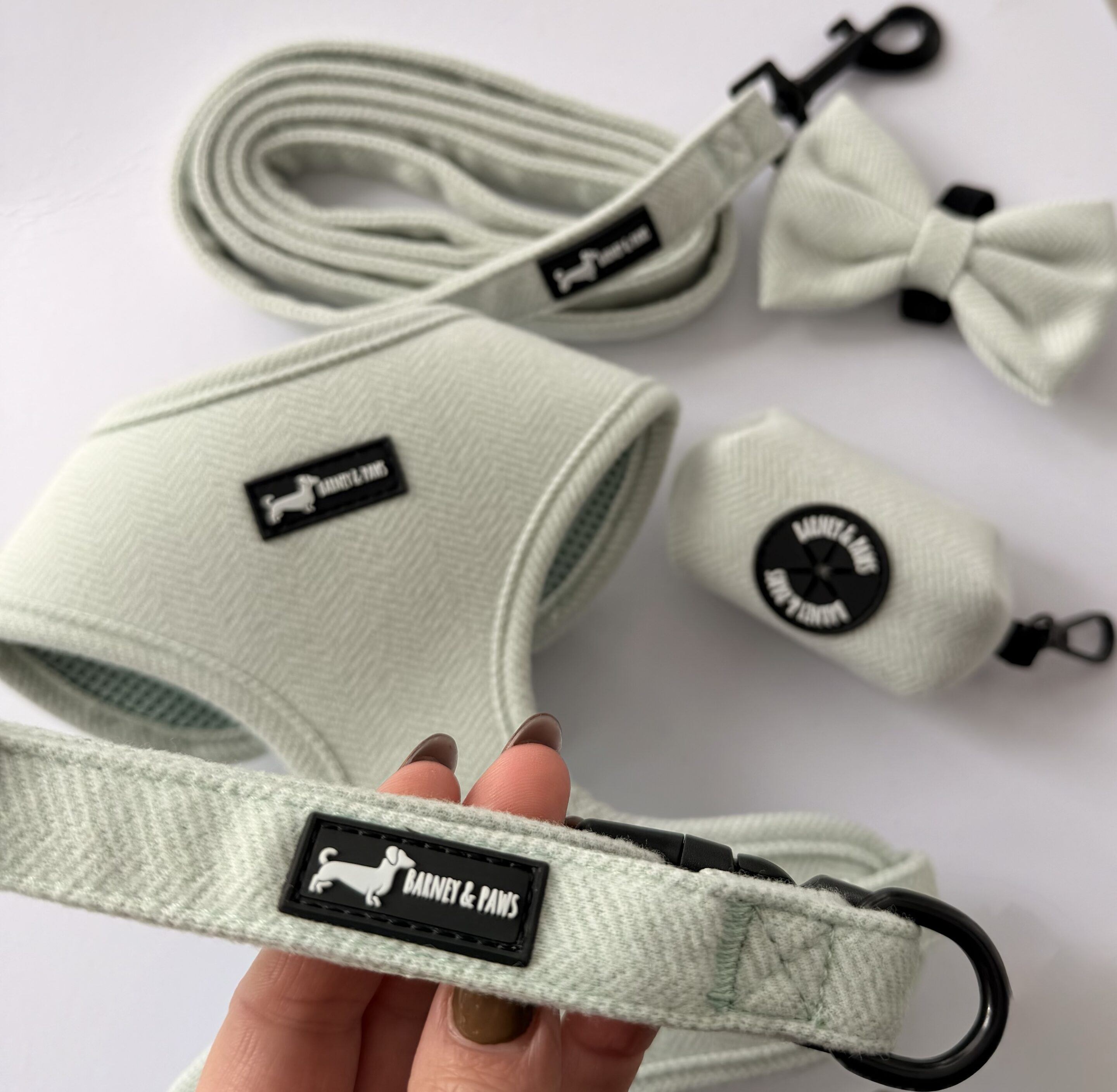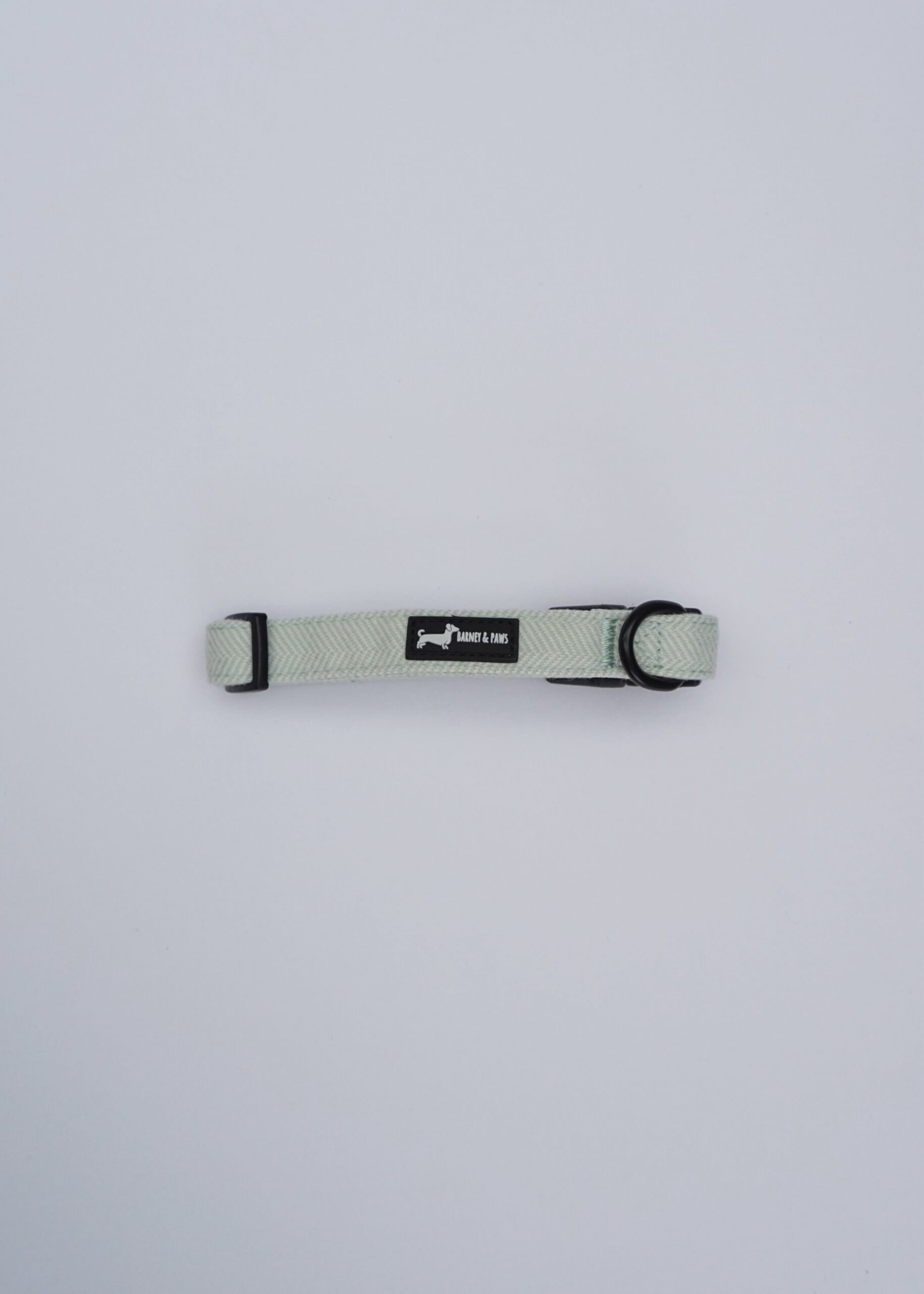 Inspired by soft greens and countryside strolls, the Herringbone Sage Collar is crafted in a muted, earthy shade for understated elegance and comfort.