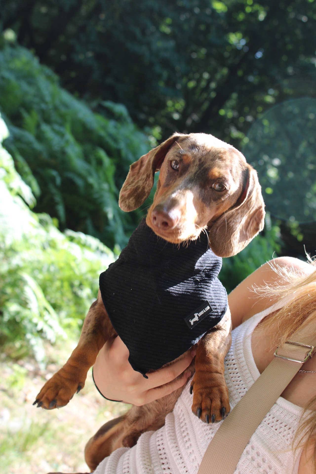 Deep, rich, and effortlessly stylish — the Midnight Cord Bandana is the perfect statement piece for pups who like their walkwear classic and cool. Made from soft corduroy in a luxurious black hue, this bandana brings a touch of refined charm to everyday adventures.